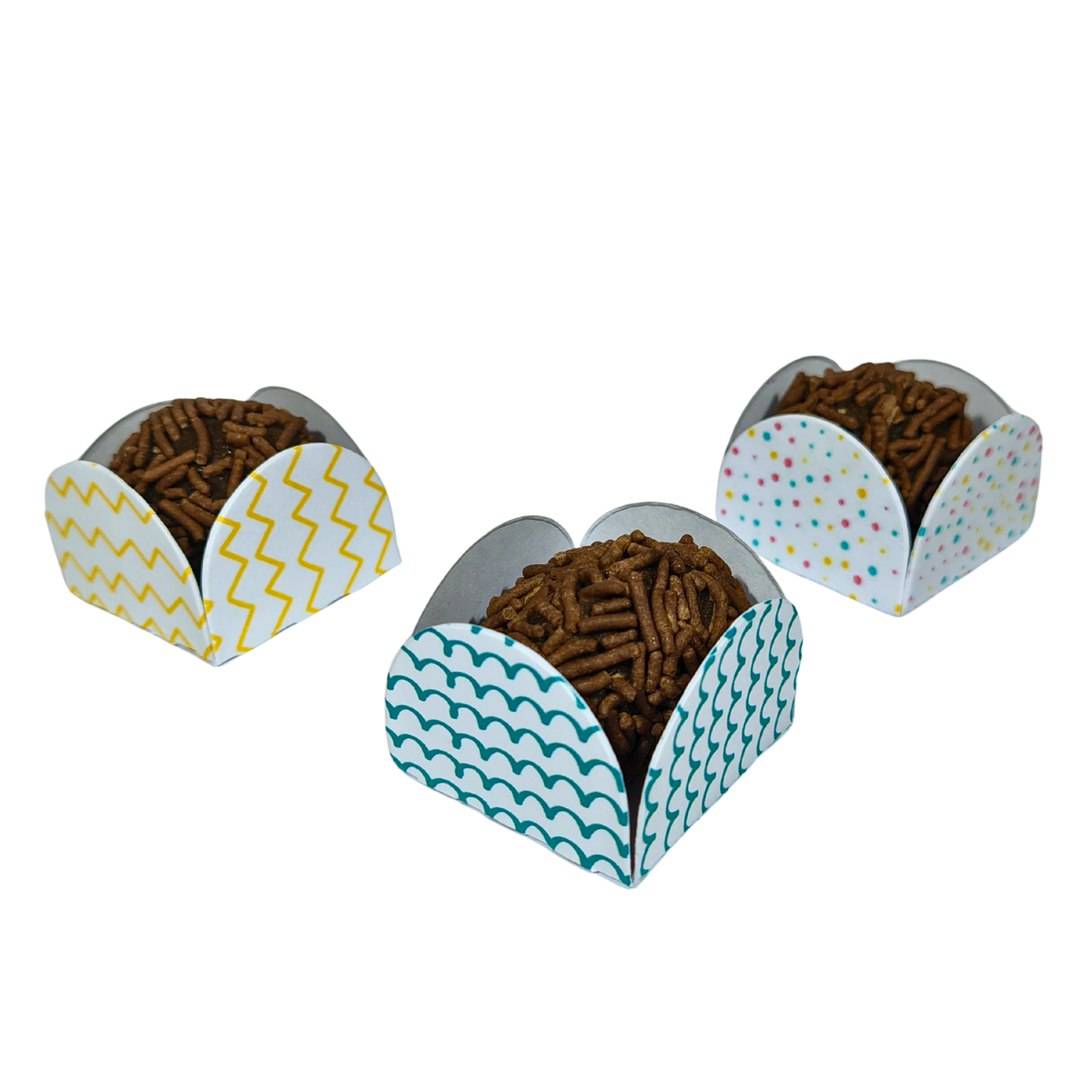 As forminhas são enviadas cortadas e vincadas.