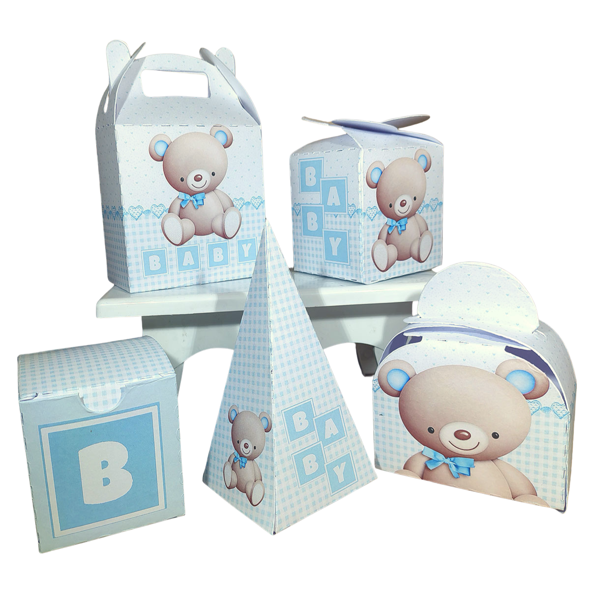 20 Caixinhas Tema Ursinho Azul Sem Personalização